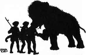 One day while they were at work an Elephant came limping on three feet to them. He held up one foot and the carpenters saw that it was swollen and sore. Then the Elephant lay down and the men saw that there was a great splinter in the sore foot. They pulled it out and washed the sore carefully so that in a short time it would be well again.