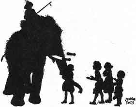 Now this Elephant had a son who was white all over--a beautiful, strong young one. Said the old Elephant to himself, "I will take my son to the place in the forest where I go to work each day so that he may learn to help the carpenters, for I am no longer young and strong."