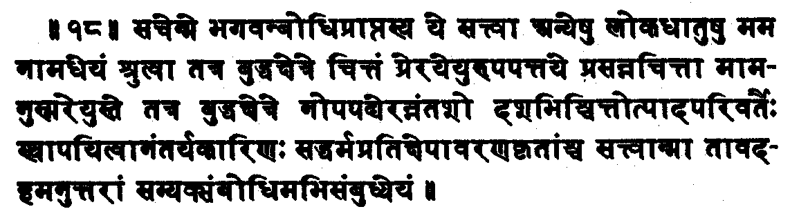 The 18th Pranidhâna in the Sanskrit text agrees with the 19th in both Chinese translations; but the 20th in these translations is somewhat shorter than the 19th in the Sanskrit text. The shorter translation is as follows:--