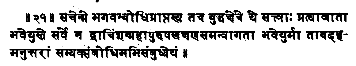 Note.--The fulfilment of this Pranidhâna is given in the text (p. 47. ll. 1-4). as the reason of the fulfilment of the I7th:--