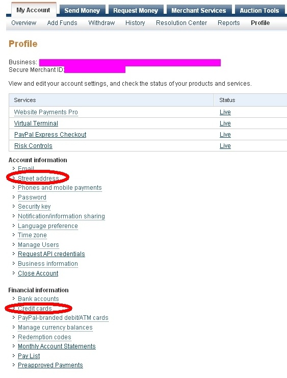 More Info: Support topic: Changing your PayPal Profile.... |