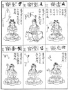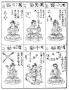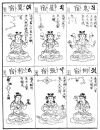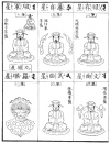 the next row we see the polar star seated (like Buddha) on a lotus and holding in his hands a wheel to indicate that he is the hub of the heavens. As Buddha in the spiritual world, so the polar star
