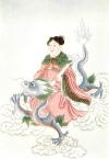 Liu I agreed to marry this young woman, and at the end of a year they had a son. She then said to her husband: “I am the daughter of the King of the Tung-t’ing Lake. It was you who saved me from my miserable plight on the bank of the Ching, and I swore I would p. 220 reward you. Formerly you refused to accept my hand, and my parents decided to marry me to the son of a silk-merchant. I cut my hair, and never ceased to hope that I might some time or other be united to you in order that I might show you my gratitude.”