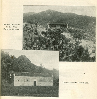 The Fourth Patriarch's Monastery is situated at the upper end of one of these delightful valleys. Approaching it from the plain below, nothing is seen of it, until the bridge, spanning the Pi Yü, crystal stream, has been crossed, when the temple comes in view, standing in a large natural amphitheater,
