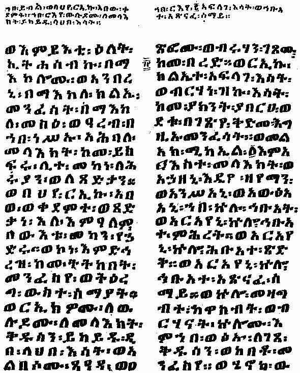 A page of the Ethiopic text of the "Book of Enoch" (British Museum MS. Orient. No. 485, Fol. 83b) containing a description of one of Enoch's visits to heaven, and how the archangel Michael took him by the hand and showed him the mysteries of heaven.