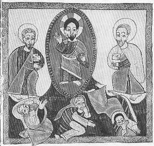 The Transfiguration. Christ in converse with Moses and Elias on Mount Tabor