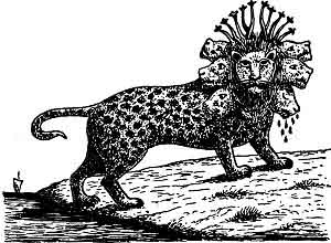 John next saw the "Dragon" standing on the seashore, and as he stood, a "Beast" rose up out of the sea having "SEVEN HEADS" and "TEN HORNS," and upon his "Horns" "TEN CROWNS," and upon his "Heads" the name of BLASPHEMY, and the body of the "Beast" was like a LEOPARD, and his feet were as the feet of a BEAR, and his mouth as the mouth of a LION, and the "DRAGON"