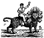 John's "I saw a BEAST rise up out of the SEA, having SEVEN HEADS and TEN HORNS, and upon his horns TEN CROWNS, and upon his heads the NAMES OF BLASPHEMY. And the BEAST which I saw was like unto a LEOPARD, and his feet were as the feet of a BEAR, and his mouth as the mouth of a LION; and the Dragon gave him his power, and his seat, and great authority. And I saw one of his HEADS as it were wounded to death; and his deadly wound was healed; and all the world wondered after the BEAST. . . . And there was given unto him a mouth speaking great things and blasphemies; and power was given unto him to continue FORTY AND TWO MONTHS. And he opened his mouth in blasphemy against God, to blaspheme His Name, and His Tabernacle, and them that dwell in Heaven. And it was given unto him to make war with the saints, and to overcome them; and power was given him over all kindreds, and tongues, and nations." |