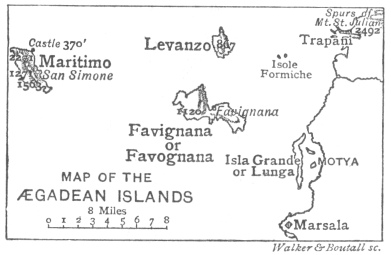 180:* The name Favognana is derived from Favonius, this wind blowing on to Trapani from off the island. It is, however, also and perhaps most frequently called Favignana.