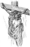 She nailed the other hand. She nailed the feet, one upon the other. Then, excited by the springs of blood escaping from the three wounds, she cried: "It is not enough! Wait! Thief! Sow! Sailor's trollop!"