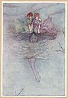 Now her sisters arrived on land, and never rested till they came to the rock, without visiting of their father and mother, and leaped down rashly from the hill themselves: Then Zephyrus according to the divine commandment brought them down, though it were against his will, and laid them in the valley without any harm. By and by they went into the palace to their sister without leave, and when they had eftsoons embraced their prey, and thanked her with flattering words for the treasure which she gave them, they said': "O dear sister Psyche, know you that you are now no more a child, but a mother: O what great joy bear you unto us in your belly: what a comfort will it be unto all the house! how happy shall we be, that shall see this infant nourished amongst so great plenty of treasure! that if he be like his parents, as it is. necessary he should, there is no doubt but a new Cupid shall be born." By this kind of means they went about to win Psyche by. little and little; but because they were weary with travel, they. sat them down in chairs, and after that they had washed their bodies in bains, they went into a parlour, where all kind of meats were ready prepared. Psyche commanded one to play with his harp; it was. done. Then immediately others sang, others tuned their instruments, but no person was seen; by whose sweet harmony and modulation the sisters of Psyche were greatly delighted.