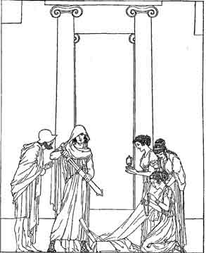 Achilles bade good-bye to Phthia, and to his hero-father and his immortal mother, and he and Patroklos with the Myrmidons went over the sea to Aulis and joined the host of the Kings and Princes who had made a vow not to refrain from war until they had taken King Priams famous city.