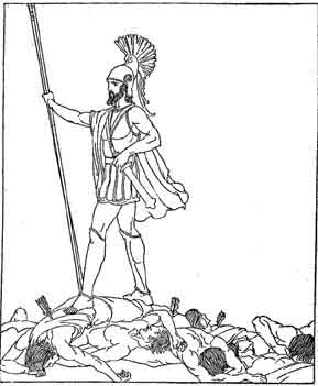 I did not see the slaying, Eurycleia said, but I heard the groaning of the men as they were slain. And then I found Odysseus standing amongst many dead men, and it comforted my heart to see him standing there like a lion aroused. Come with me now, lady, that you may both enter into your hearts delight--you that have suffered so much of affliction. Thy lord hath come alive to his own hearth, and he hath found his wife and his son alive and well.