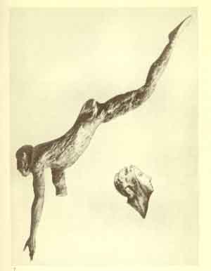[paragraph continues] 30 inches. They were almost intact, although cracked by the drying of the clay. Excavations on the floor of the cavern revealed a great number of bones of the bison, but no signs that the place had been used as a dwelling-place or as a kitchen by the cave-dwellers." In this eerie cave the Palæolithic folk had evidently conducted mysterious ceremonies. But for what purpose? the Count wondered. "It was an old peasant who gave him his clue. 'It is a charm,' said he, when his eyes fell on one of the relics. Questioned regarding his statement, this man went on to tell that the peasants of the neighbourhood have an ancient custom which they believe enables them to catch the foxes which raid their chicken-yards. They made, he said, a clay image of a fox which they rubbed with the blood of a fox, and then concealed among the rocks at certain places. Close to it they buried the carcass of a fox. Then they set traps near by, and towards these foxes were drawn by the magical influence of the modelled fox and were invariably caught." It is unnecessary to emphasize the importance of this evidence. Similar practices were widespread long centuries after the Palæolithic folk flourished in southern France. The Babylonians and Egyptians shaped waxen and clay images of demons and thrust them into a fire so as to injure or destroy the beings they thus depicted. Magical images were also made in Greece and Rome, and they are still being produced in various parts of the world. The Scottish Highland corp chreadh ("clay body") was an image of an individual whom the maker desired to afflict or slay magically. 1 Pins or nails were stuck into it so that the victim might suffer pain, and it was placed in running water so that he might "waste away". Images of fish, turtle, and dugong