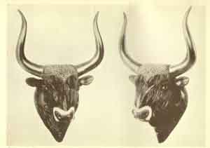 BULL'S HEAD, IN STEATITE, FROM KNOSSOS: FULL FACE AND PROFILE VIEWS