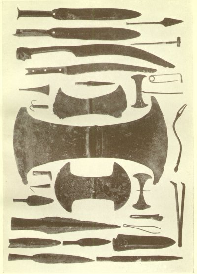 Including double axes, spear-heads, knives, daggers, fish hooks, fibula, tweezers, gimlet, &c.