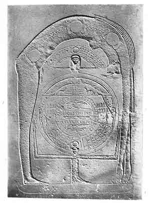 Nut was goddess of the starry sky. Sometimes she is represented as powdered with stars; sometimes, as here, with but a line of them along her spine; once at least, on the sarcophagus lid of Uresh-Nofer, with the three discs or spheres of universal significance--body, spirit, soul--connected by eight stars and by six. Sometimes the band of stars was accompanied by a band of water flowing over her spine--the celestial Nile, as the Egyptians called the mysterious heavenly waters that covered the world. Sometimes the path of the celestial Nile is called the path of the Milky Way; and often the path of the Milky Way is called the path of souls." Through her husband, Seb, she gave birth to the Sun, which was ever after re-born each morning: daily it made its journey from east to west beneath her body until, sinking below the western horizon, it passed into the mouth of Nut, traversed her body during the night, to be born again at dawn. Nut also gave birth to the Moon, which came forth from her breasts as milk. And to countless other heavenly bodies as well whose genealogy would take us too far.