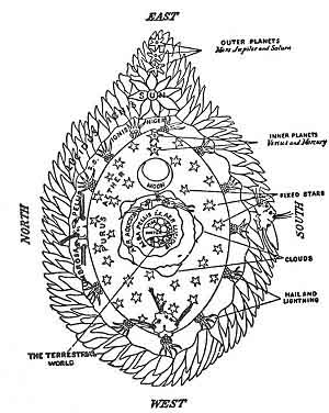 Beyond this are four outer zones belonging to the four winds, indicated by the breath of supernatural beings.