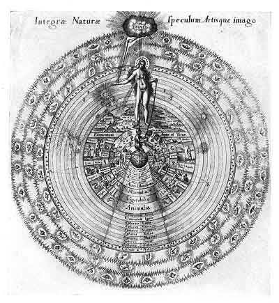 From all these zones with all their contents, elements, winds, Sun, Moon, planets, fixed stars, and the great animals or qualities of the heavens, are rained down influences upon the figure of the macrocosm.