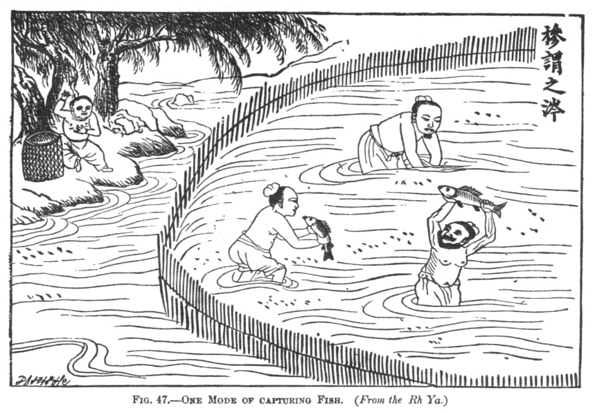 FIG. 47.ONE MODE OF CAPTURING FISH. (From the Rh Ya.)
