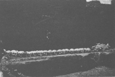 Human skulls unearthed during the excavations of the Temple of the Second Pyramid of Gizeh.