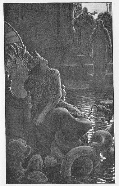 water, in which were all manner of serpents and floating beasts. Then the wheel began to turn, and he went down, down among the floating things, and they wreathed themselves about him till he cried, "Help! help!"