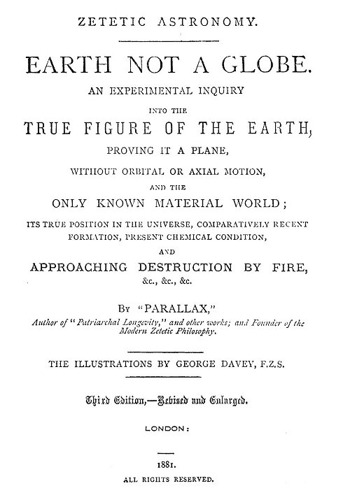 Zetetic Astronomy, by 'Parallax' (pseud. Samuel Birley Rowbotham), [1881], at sacred-texts.com