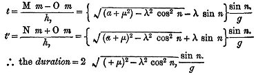 "COR. 1.--If λ cos n, be greater than α + μ, t and t´ are impossible, and no eclipse can take place, as is also evident from the figure.