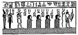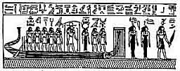 [paragraph continues] In front of the boat glide three serpents, which are called SEK-RE, SEFA, and NEPEN, and in front of these march four man-headed