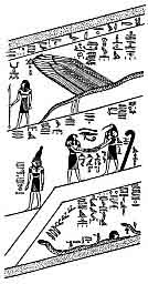 [paragraph continues] As the further course of the corridor will be described under the Fifth Hour we may pass on to consider the Boat of the Sun, and the means by which the god makes his way onward.
