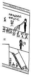 8. Immediately in front of the god ANP-HENI is an object which looks like a chamber with a rounded roof; but whatever it may be, it is filled with sand, and from the fact that the sign of "night" or "darkness," appears at the top, we may conclude that it represents