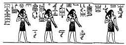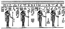(Left) Shemerti. (Center) The serpent Thes-hrau. (Right) Hert-erment.