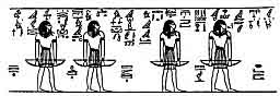(Left) Amen-khu. (Center) Her-sheta-taui. (Right) Sem-Heru. (Left) Amen Heru. (Center) Khent-ast-f. (Right) Khent-ment-f.