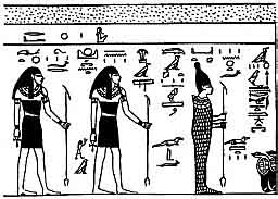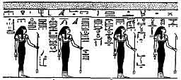 [paragraph continues] HERT-ERMENT, and the head which faces the left has on it a Red Crown, and is directly opposite to the face of a goddess, who also wears a Red Crown and is called SHEMERTI, i.e., "She of the two bows."