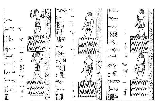 the air in the following of your souls, whose souls have been deprived of their heavenly air, and who beat the air with your hands in order to obtain it, O make ye your way in Nu by means of your legs, and your thighs shall not be in any way impeded. Come ye forth in this stream, descend ye on these waves, fill ye HAP-UR, and arrive ye at its furrows,
