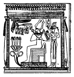 Appendix: The shrine is in some instances represented in the shape of a pylon, the cornice of which is ornamented either with uræi, or with the disk of the sun and feathers, emblematic of Maat. It usually rests upon a base made in the shape of a cubit, The throne upon which Osiris sits is placed upon reed mats (British Museum papyrus No. 10,471), or upon the cubit-shaped base, or in a pool of water, from which springs a lotus flower with buds and having the four gods of the cardinal points (see British Museum papyrus No. 9901) standing upon it. In some of the