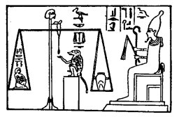 In the Ani papyrus, however, it will be observed that the heart is being weighed against the feather of the Law, Maat, a scene which often accompanies Chapter CXXV.
