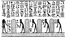 "And Ra saith unto them:--'Look ye upon me, O gods, for I strike those who are in their sepulchres, [saying], Arise, O ye gods! I have ordered for you the plan and manner of your existence, O ye who are in your sepulchres, whose souls are broken, who live upon your own filth and feed upon your own offal, rise up before my Disk, and put ye yourselves in a (right state by means of my beams. The duties which ye shall have in the Tuat are in conformity with the things which I have decreed for you.' Their food consisteth of flesh, and their ale is [made] of the red [barley], and their libations are of cool water. There is lamentation to them after they have heard their doors close upon them."