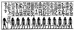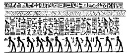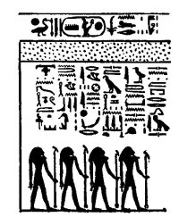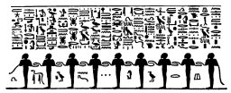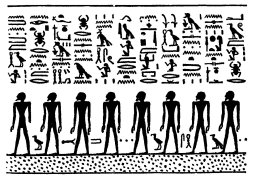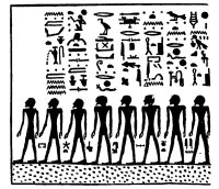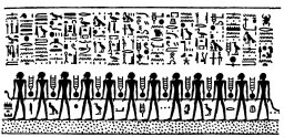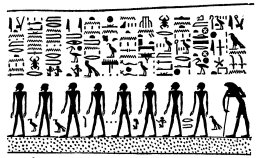 The Aamu, i.e., Asiatics. The Reth, i.e., Egyptians. (far right) Horus. The Themehu, i.e., Libyans. The Nehesu, i.e., Negroes.