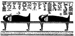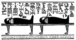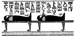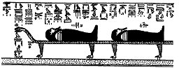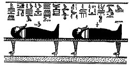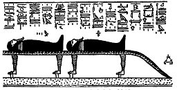 2. The serpent NEHEP, the long body of which is made to serve as biers for twelve gods in mummied form; the serpent's body is provided with twenty-four legs of lions, and a mummied god rests over each pair of them. These gods are described as "those who are in the body of Osiris asleep," and "those who are in inactivity,"