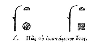 12:3 Salm. and De Pauw suggest, and Leem has ventured to insert in the text καὶ τετάρου, i.e. and a quarter, which entirely destroys the passage. Mr. Wilkinson says, "They had two years, one intercalated, the other not: the former was calculated from the Heliacal rising of the Dogstar, to that of the ensuing year, and was hence called the Sothic year: it had also the name of Squared year, from the intercalation; and when expressed in hieroglyphics a square is placed instead of the globe of the solar year, which last was used in the dates of their tablets, that refer to the reigns of kings or ages of individuals." Mat. Hier. part ii. p. 134.