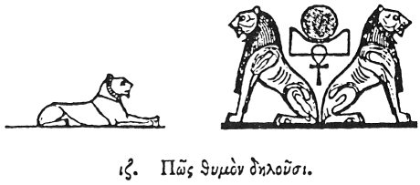 face, and about it hairs like rays in resemblance of the sun; and hence it is, that they place lions under the throne of Horus, intimating the connexion of the animal with the god. And the sun is called Horus from presiding over the Hours.