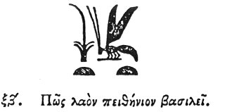 To denote a people obedient to their king, they depict a BEE, for this is the only one of all creatures which has a king whom the rest of the tribe of bees obey, as men serve their king. And they intimate from the honey's - - - - - - from the force of the creature's sting - - - - that