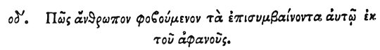 When they would denote a man who is fearful lest accidents should happen unexpectedly to himself, they depict a WOLF AND A STONE; for it fears neither iron, nor a stick, but a stone only; and indeed, if any one throw a stone at him he will find him terrified: and wherever a wolf is struck by a stone, maggots are engendered from the bruise.