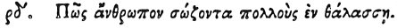 When they would symbolise a man who saves many in the sea, they depict the TORPEDO FISH; for this, when it perceives a number of fishes unable to swim, draws them to itself and preserves them.