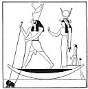 [paragraph continues] Horus pursued them, and drove them down the river before him as far as Thebes. One battle took place at Tchetmet, and another at Denderah, and Horus was always victorious; the enemies were caught by chains thrown over them, and the deadly spears of the Blacksmiths drank their blood.