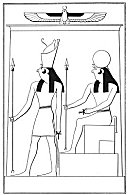 Horus of Behutet and Ra-Harmakhis in a shrine.