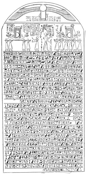THE text which contains this legend is found cut in hieroglyphics upon a stele which is now preserved in Paris. Attention was first called to it by Chabas, who in 1857 gave a translation of it in the Revue Archéologique, p. 65 ff., and pointed out the importance of its contents with his characteristic ability. The hieroglyphic text was first published by Ledrain in his work on the monuments of the Bibliothèque Nationale in Paris, 1 and I gave a transcript of the text, with transliteration and translation, in 1895. 2
