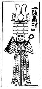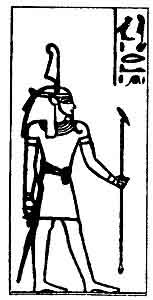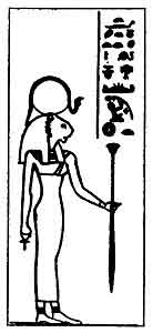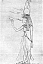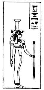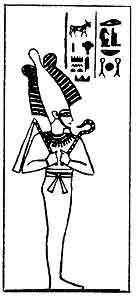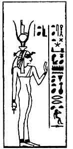 | Isis, female counterpart of Osiris, and mother of Horus. |