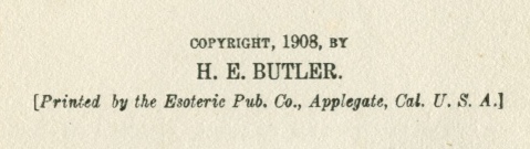 [Printed by the Esoteric Pub. Co., Applegate, Calif., U. S. A.]
